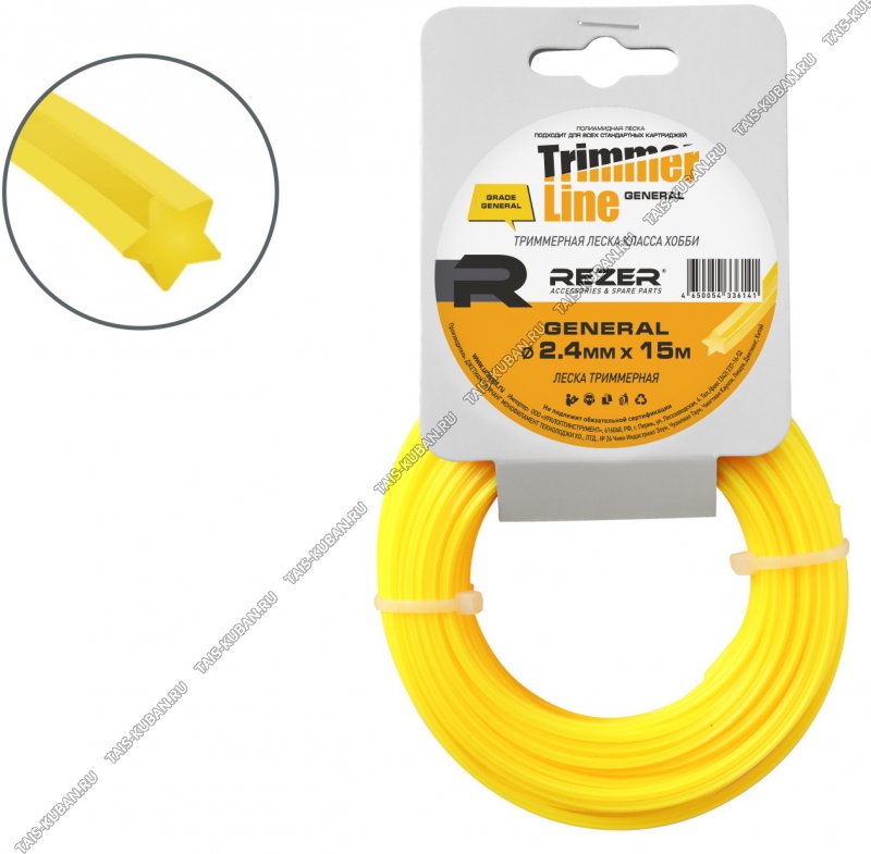 Леска REZER"General"- д/триммера, звезда d2,4мм.х15м.