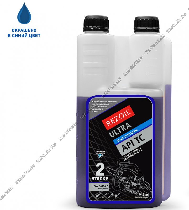Масло моторное REZOIL- 0.95л. д/2-х тактн.двигателей, полусинтетическое, с ДОЗАТОРН.отсеком, окрашен в син.цв., API TC