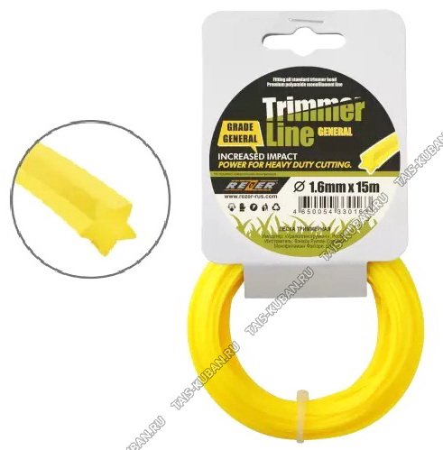 Леска REZER"General"- д/триммера, квадрат d1,6мм.х15м,цв.желт