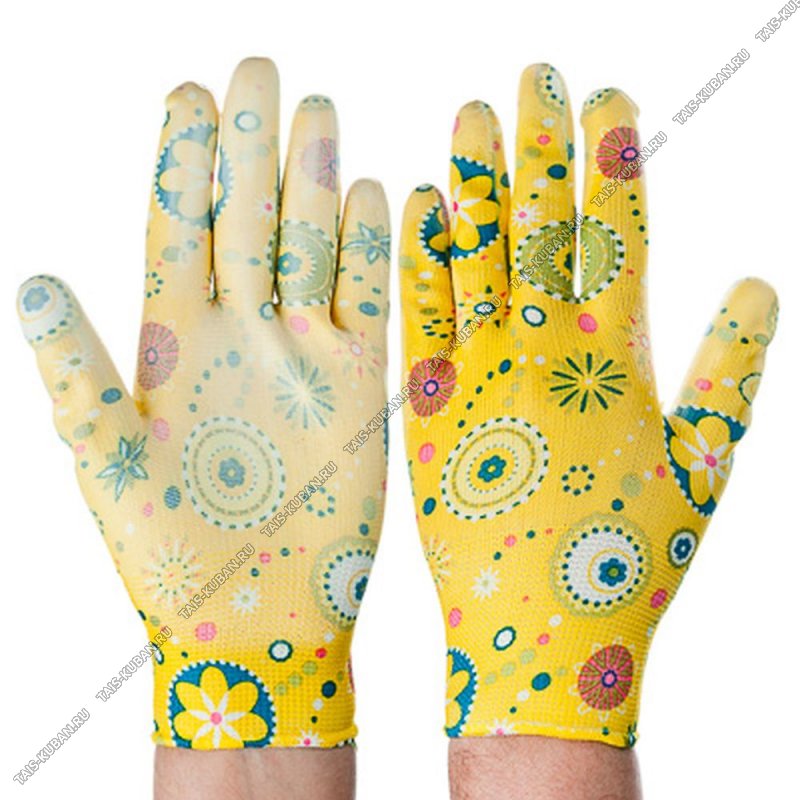 Перчатки д/сад.работ 9 разм (L) полиэстр+нитрил-ладонь,цветн.рисунок (10)