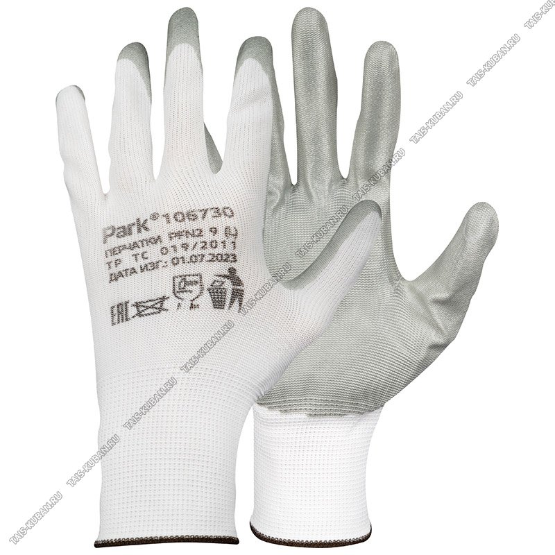Перчатки д/сад.работ 9 разм (L) полиэстер+нитрил-ладонь,класс вязки 13,белый (300)