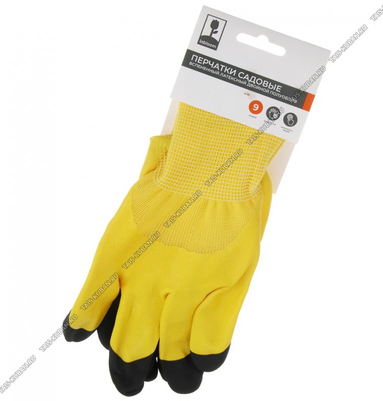 Перчатки для садовых работ 9 разм (L) полиэстер+вспененный латексный двойной полуоблив, эластичные, изностойкие, желтые (12/180)
