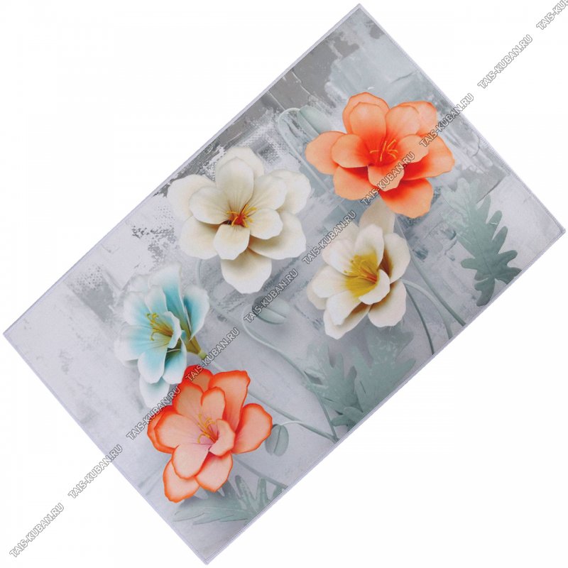 Коврик (50х80см) "Grayli/Камелии" серый перламутр,"вельвет" матов,пвх основа
