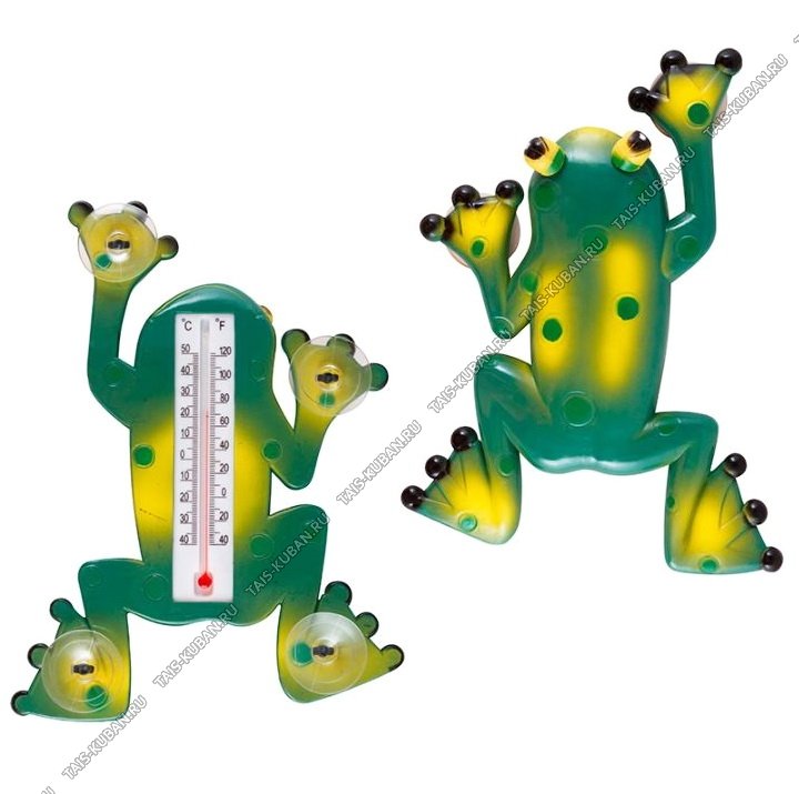Термометр уличный для окон, на липучке 4шт (L23,5х17,5см) "Лягушка" пластмасса,стекло, резина, ПВХ,керосин, упаковка пакет (72)
