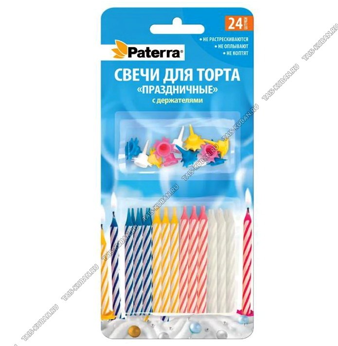 Свеча для торта .н-р 24шт +подставки h6см "Праздничные". (288)