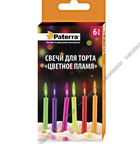 Свеча для торта .н-р 6шт h6см "Цветное пламя" (50)