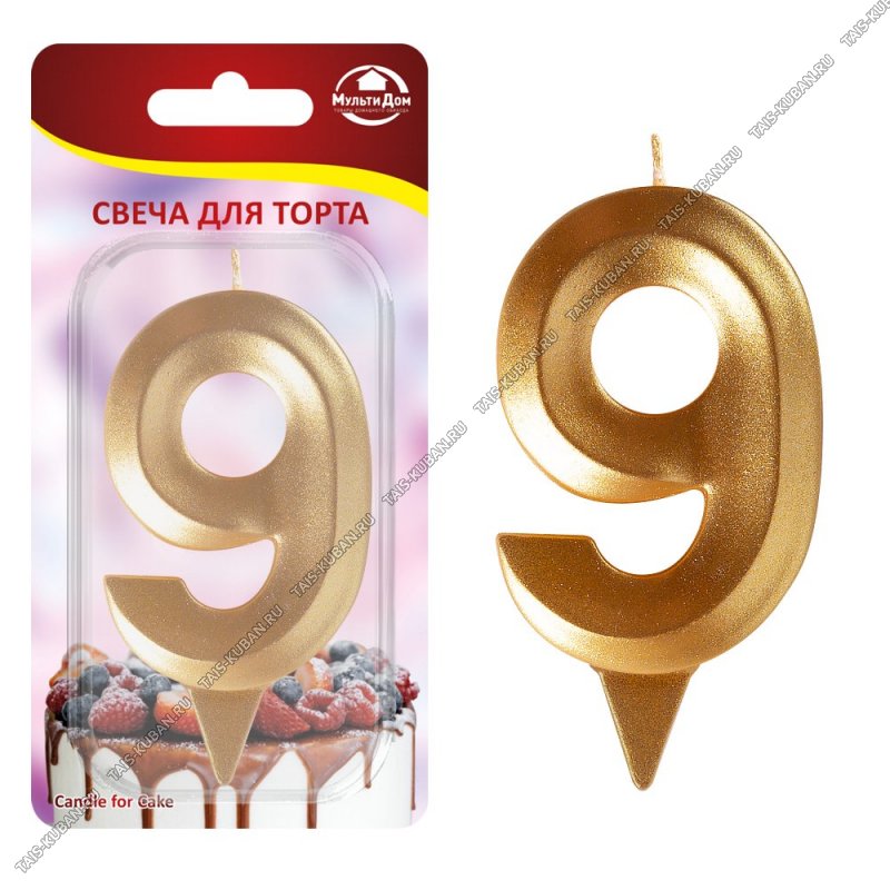 Свеча д/торта золото "Цифра 9" (48)