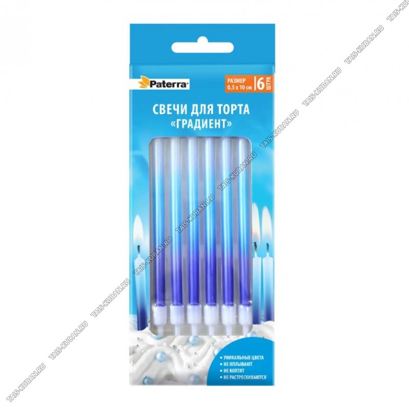 Свеча для торта .н-р 6шт h11см "Градиент/Сине-голубой" (24)