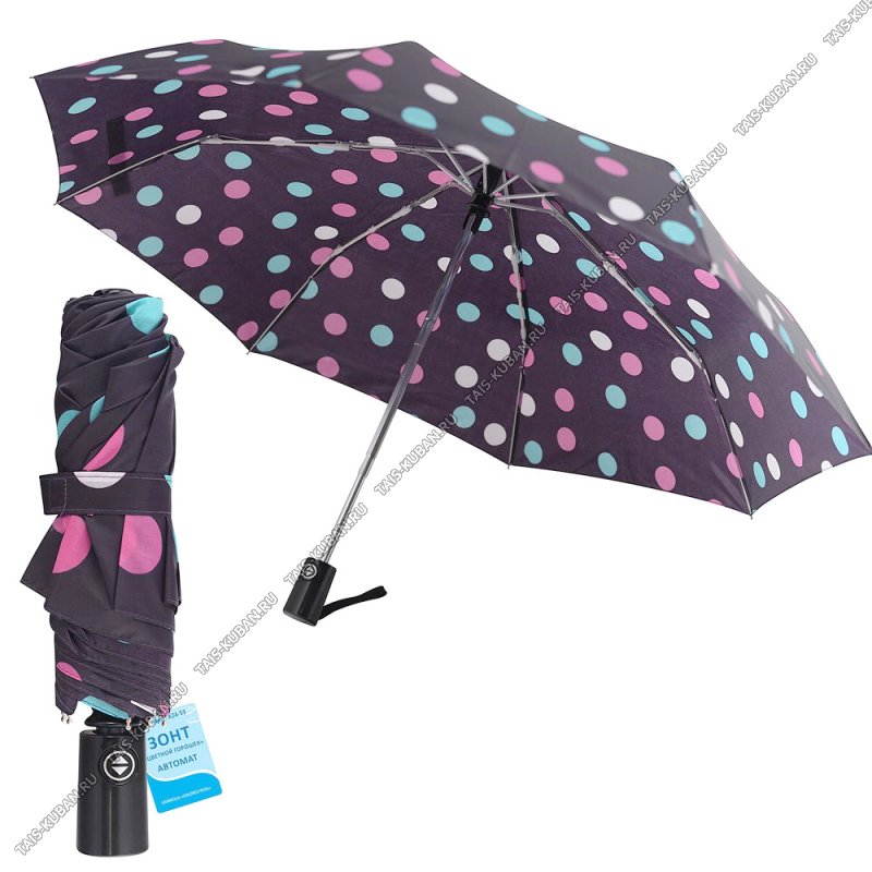 Зонт складной автомат d98см "Цветной горошек" h55см, 8спиц (6)