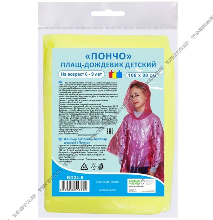 Плащ-дождевик "пончо" 108х88см, детский (12)