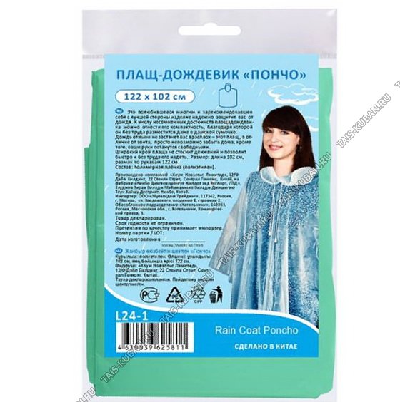 Плащ-пончо 127х103см,  П/Э, микс (25) Плащ-пончо 127х103см, П/Э, микс (25)